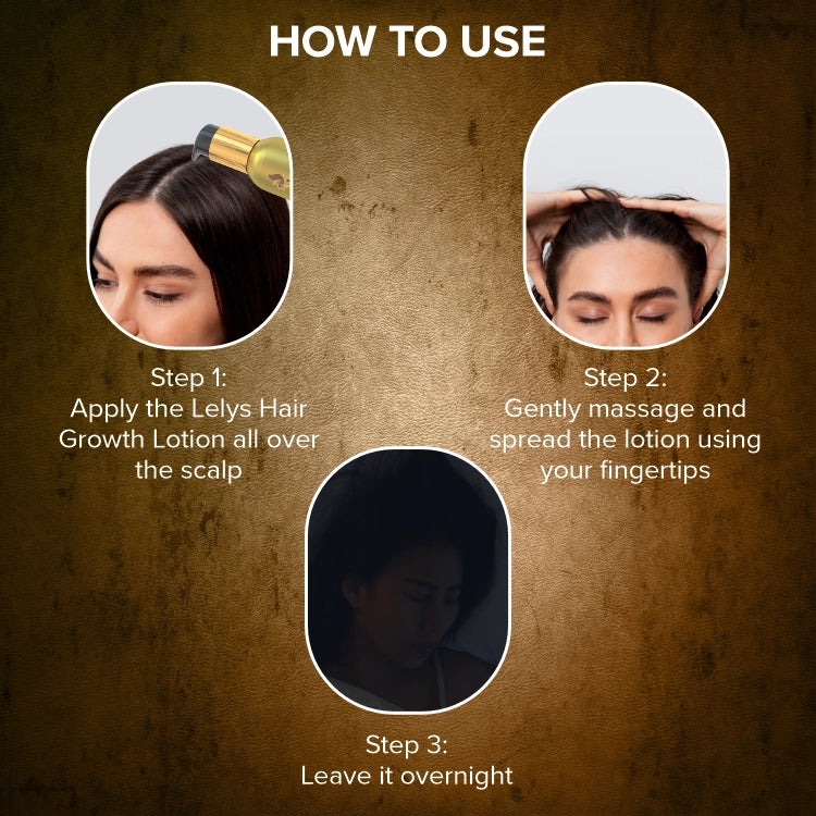 Apply the Lelys Hair Growth Lotion all over the scalp using your fingertips.