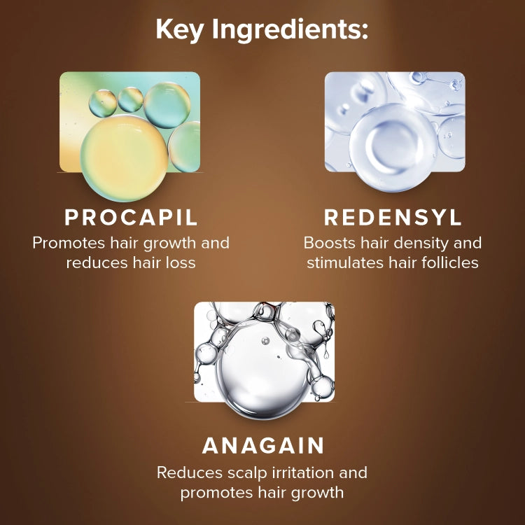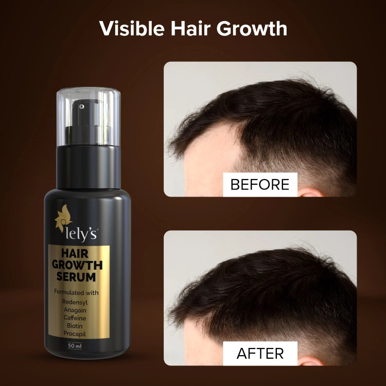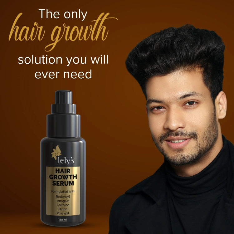 Lelys Hair Growth Serum is crafted with the finest ingredients like Procapil to target the root cause of hair loss, Redensyl to stimulate stem cells in hair follicles to boost hair growth, AnaGain to help hair follicles produce new hair, Caffeine to stimulate blood circulation, Biotin to reduce hair breakage and strengthen hair, and Saw palmetto to prevent hair loss.