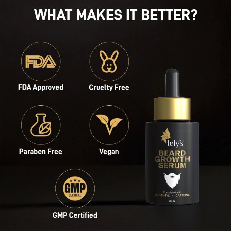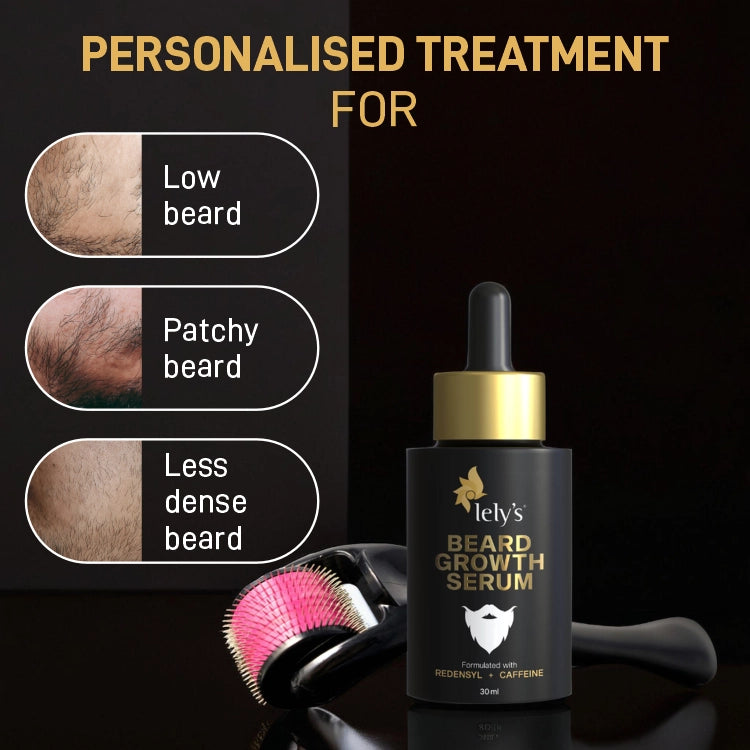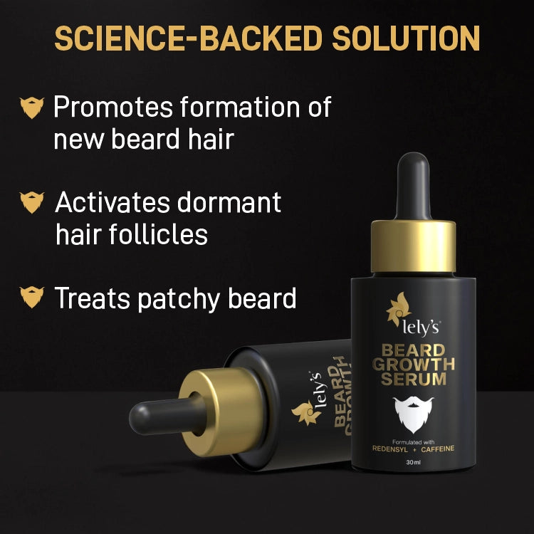 Lelys Beard Growth Booster Kit works best for patchy beards, less dense beards, low beards, and thinning hair. It activates bread hair follicles, nourishes beard hair, and addresses hair root issues. The serum for beard growth is dermatologically tested, crafted with clinically proven actives, and is suitable for all beard types.