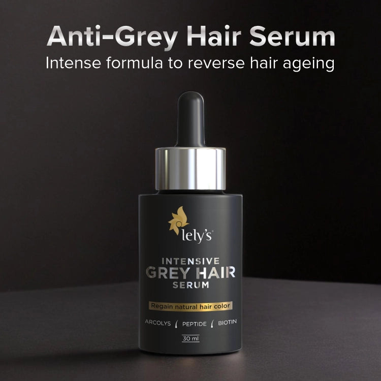 Lelys Intensive Greay Hair Serum works magic on grey hair. It prevents hair greying by increasing antioxidants, restores natural hair colour, reduces white hair density, and reverses hair pigmentation loss.