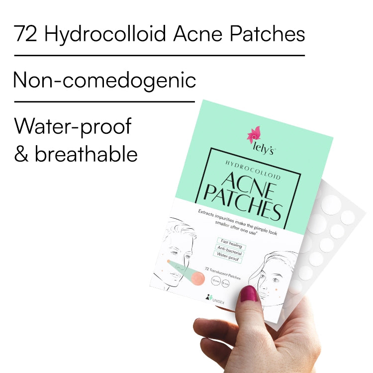 Lelys Acne patches heal pimples, absorb pus from the acne, and protect against acne-causing bacteria. These pimple patches are targeted solutions for specific pimples as they do not have to be applied all over the face and ensure maximum efficacy where it is needed the most.