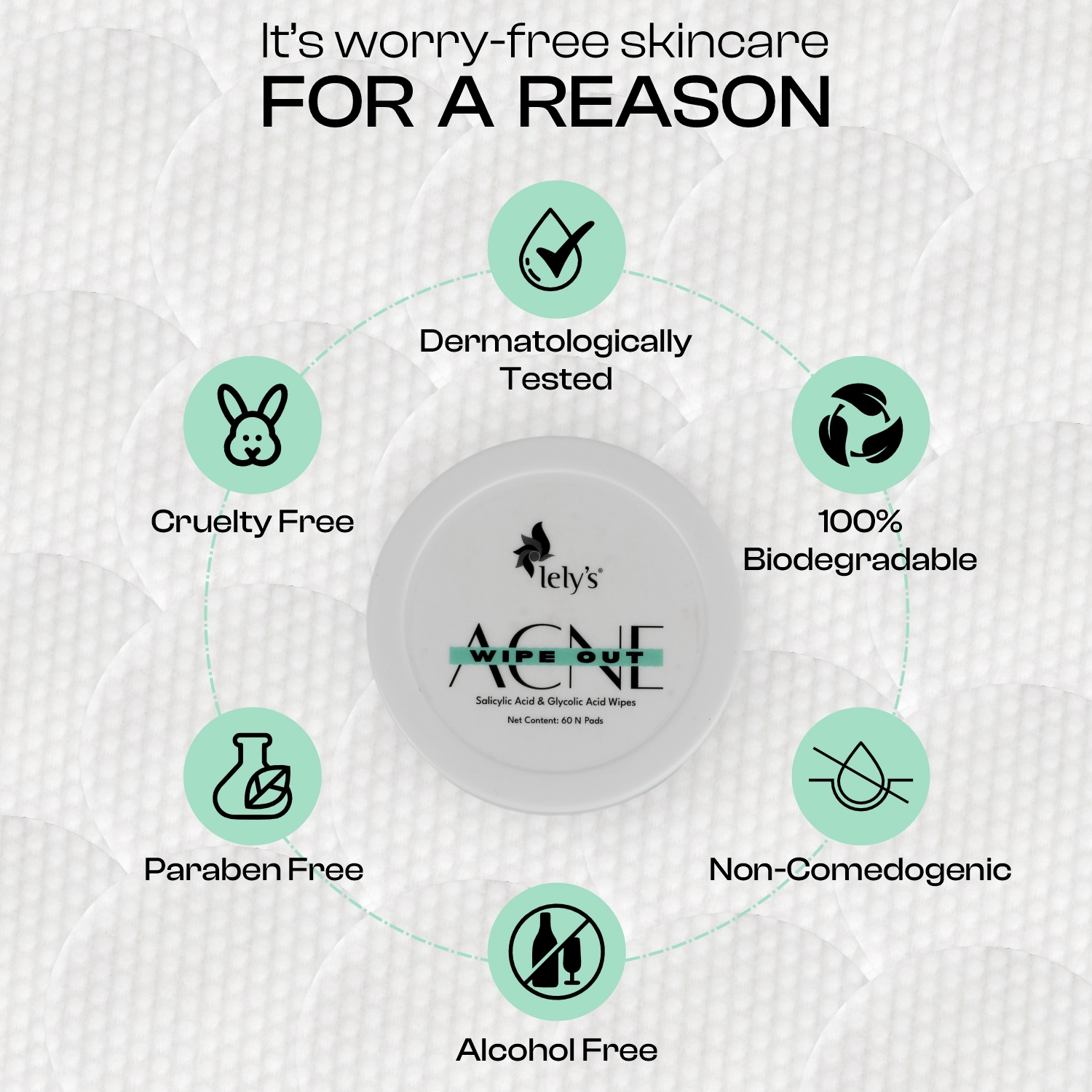 Lelys Acne Wipe Out is an on-the-go solution for fighting and preventing acne. It is dermatologically tested and the most convenient solution for getting acne-free skin. These pimple wipes can be used as a daily skincare routine to keep the skin pores clean and prevent new pimples.