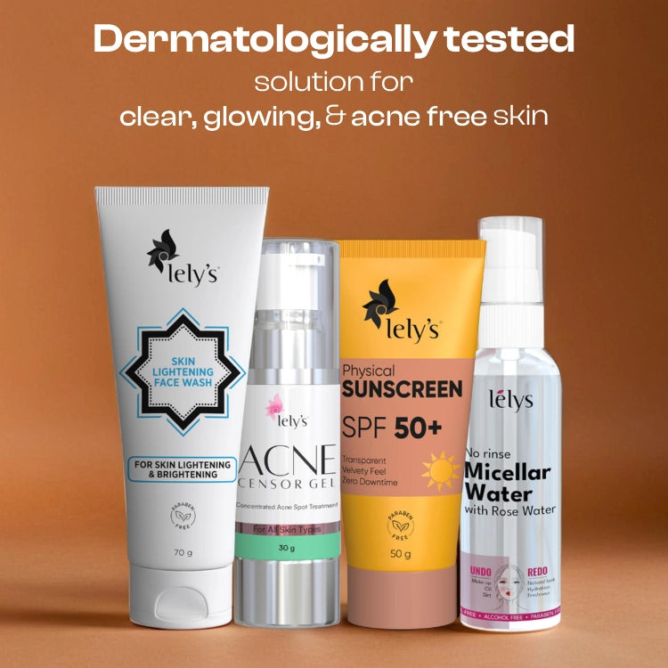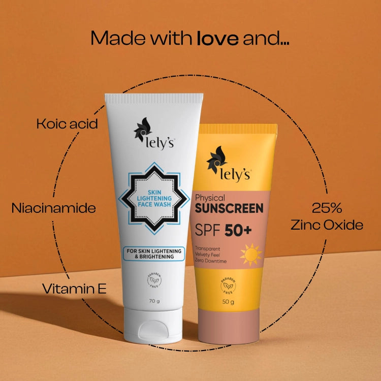 Wash your face with the Lelys Skin Lightening Face Wash and follow up with Lelys Physical Sunscreen for all-day protection.