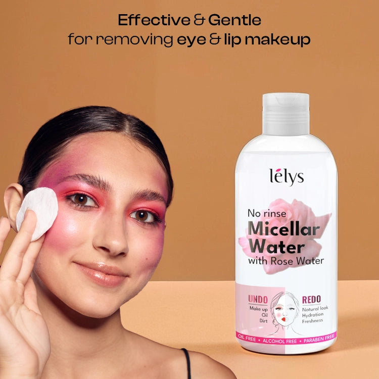 Use Lelys Micellar Water to remove makeup, dirt, and oil, leaving your skin fresh and clean
