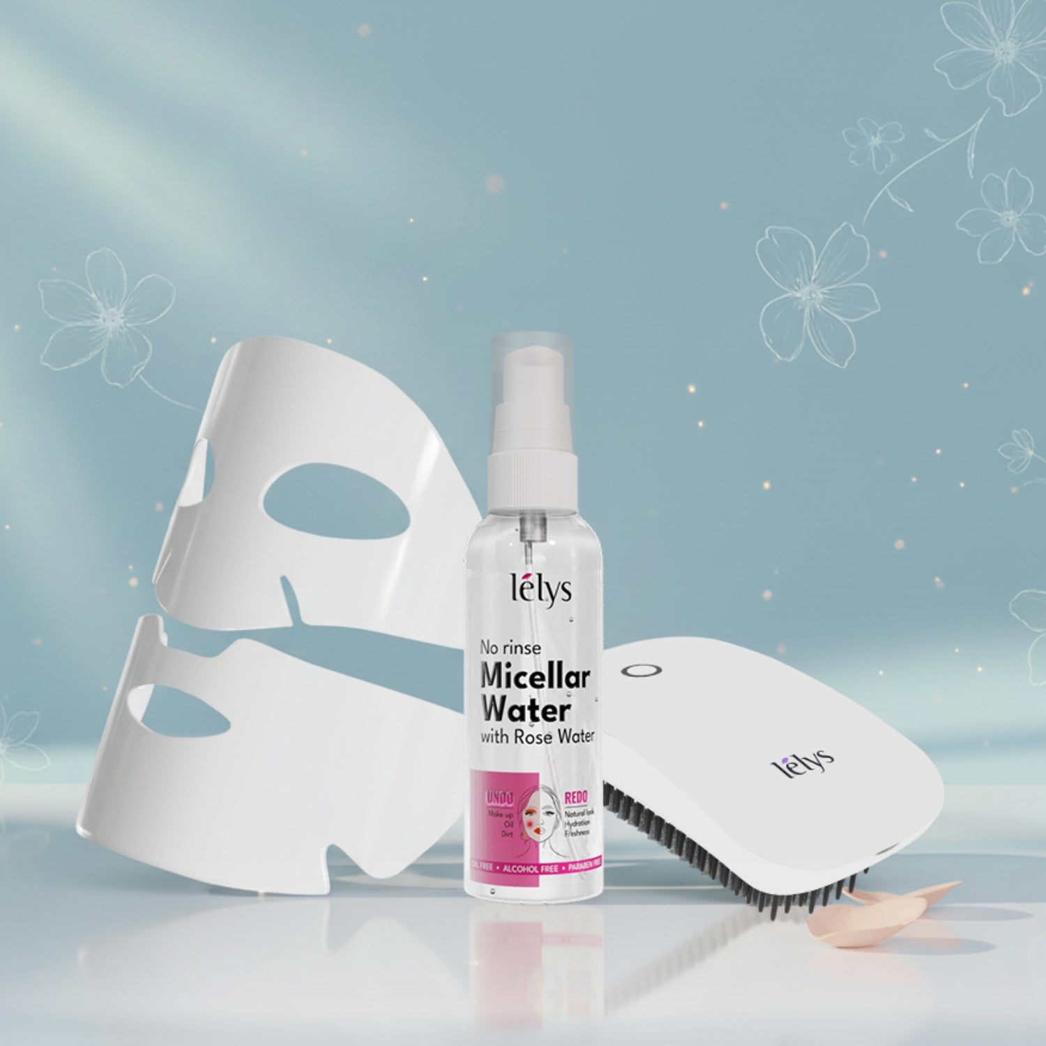 This elegant kit includes Lelys Micellar Water for refreshed, makeup-free skin, the Lelys Bio-Collagen Real Deep Sheet Mask for a radiant glow, and Lelys Electric Scalp Massager Comb for soothing relief and calm.