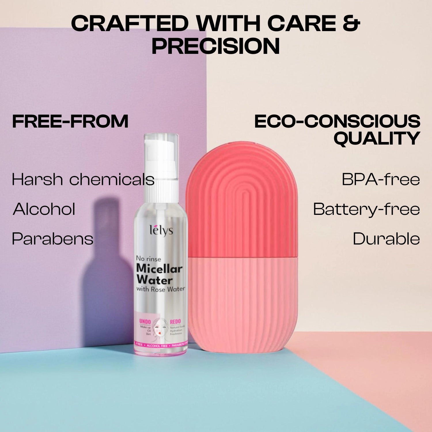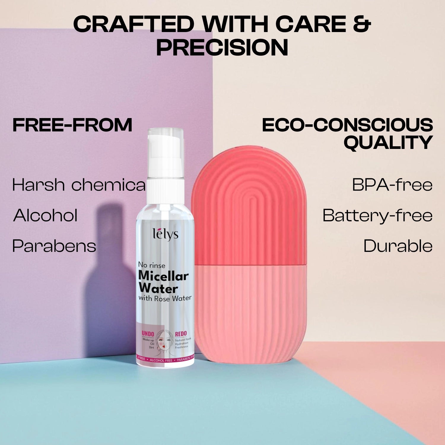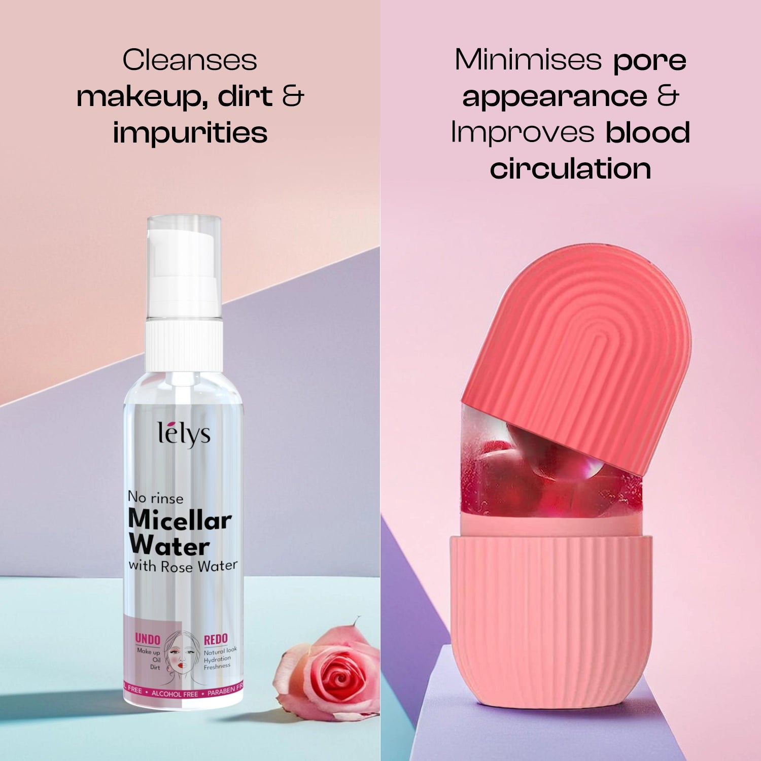 Lelys Cool Summer Kit is ideal for removing makeup with micellar water and a post-skincare treatment when paired with the ice roller. It promotes radiant, hydrated, and healthy skin by combining the cooling benefits of an ice roller.