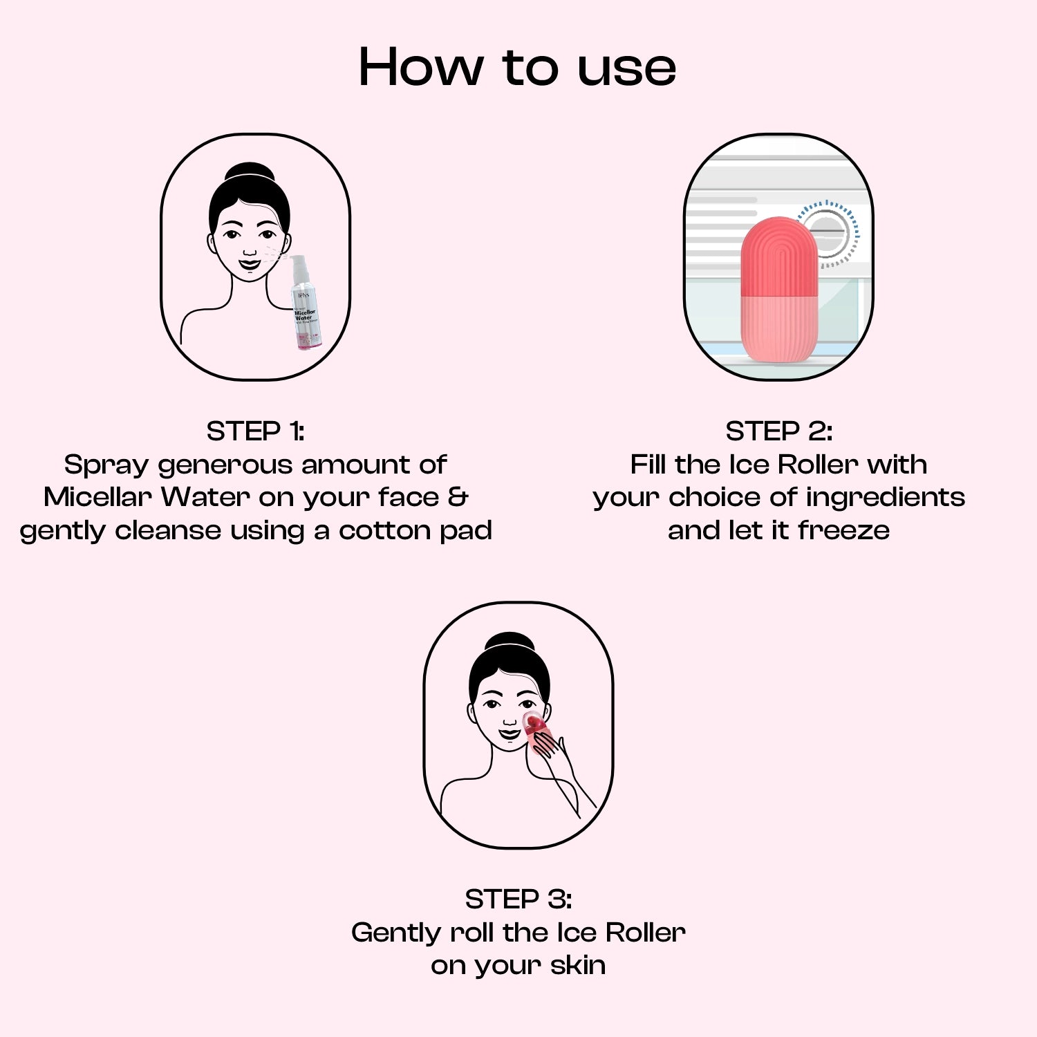 The micellar water works like a magnet to remove all the impurities from the skin and the ice roller after cleansing the skin, tightens open pores and prevents clogging of skin pores. The kit works by deep cleansing the skin without dryness and irritation, tightening skin pores, preventing future breakouts, reducing redness and puffiness, and keeping the skin hydrated.