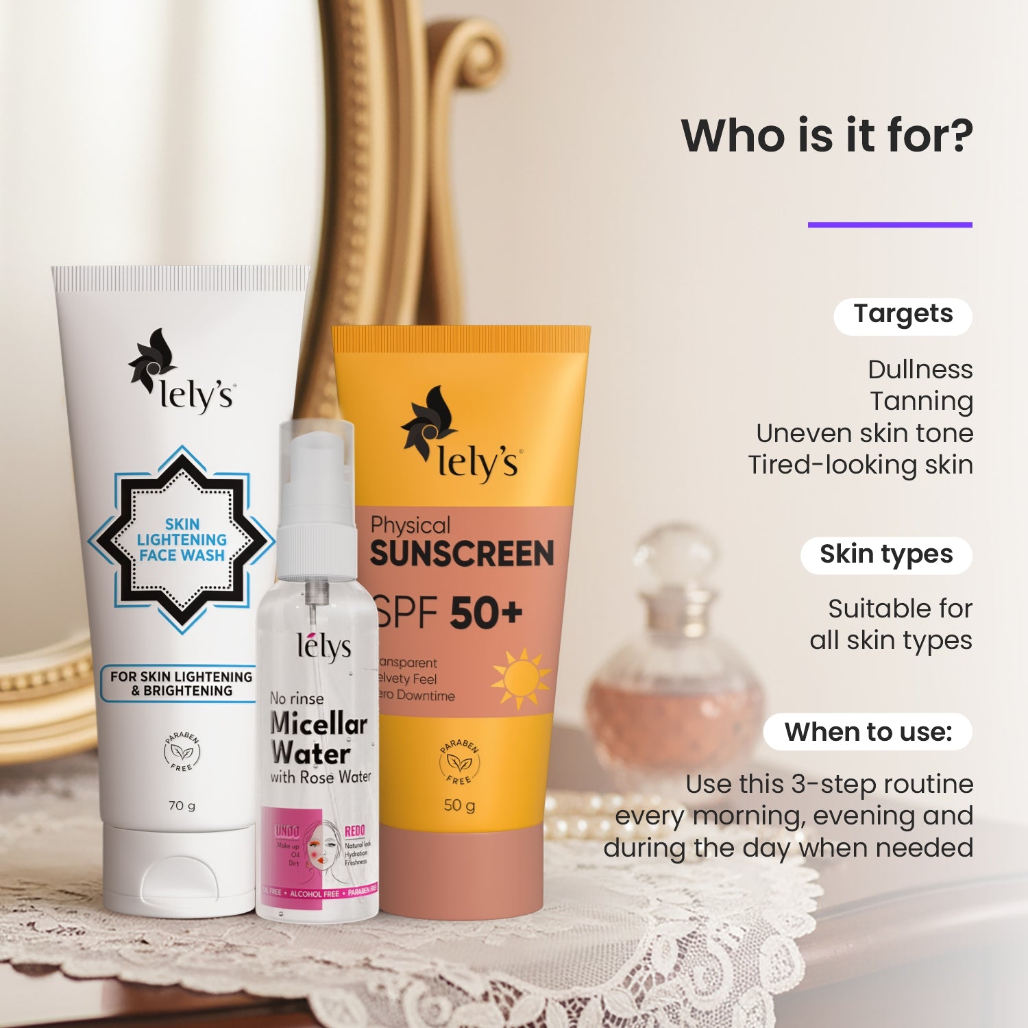 With the Skin Lightening Face Wash, Micellar Water, and Physical Sunscreen SPF 50+, it helps balance, protect, and reveal a naturally radiant skin that shines effortlessly under every light.