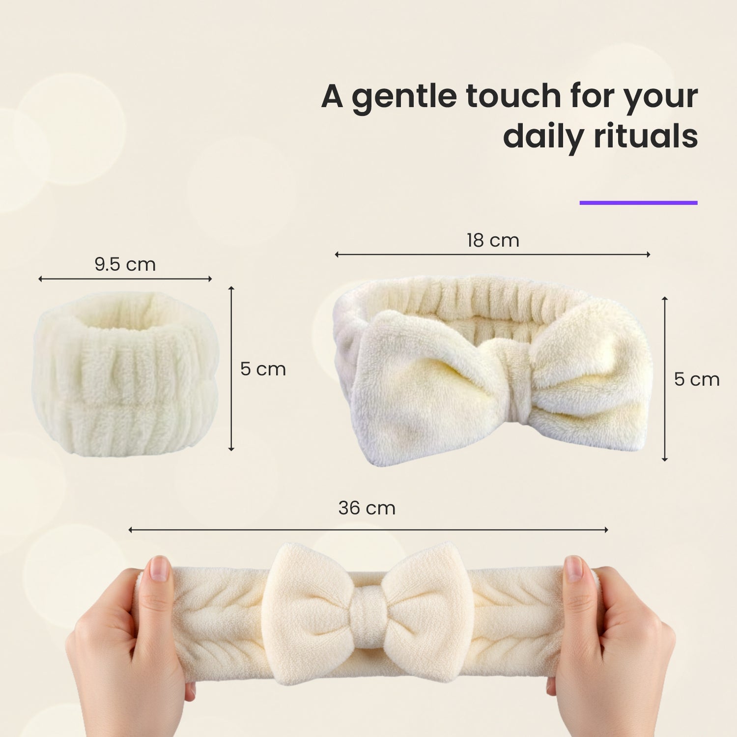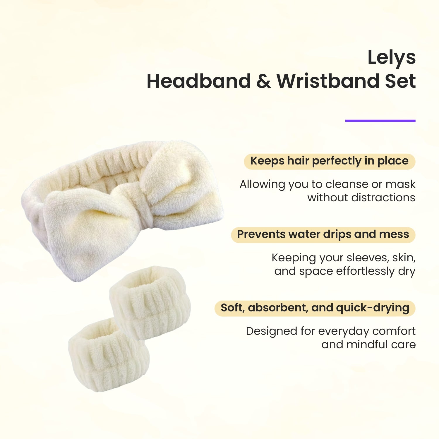 Lelys Headband & Wristband Set transforms your everyday skincare into a calm, spa-like ritual. Thoughtfully crafted, it keeps every step of the skincare routine smooth, dry, and effortlessly neat. With its soft, absorbent microfiber and understated design, it turns an ordinary moment of care into something beautifully refined and mindful.