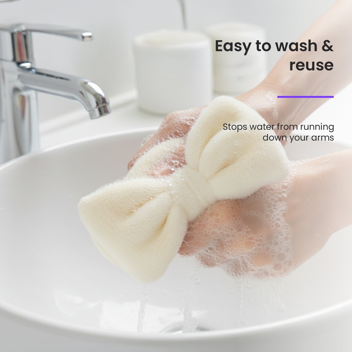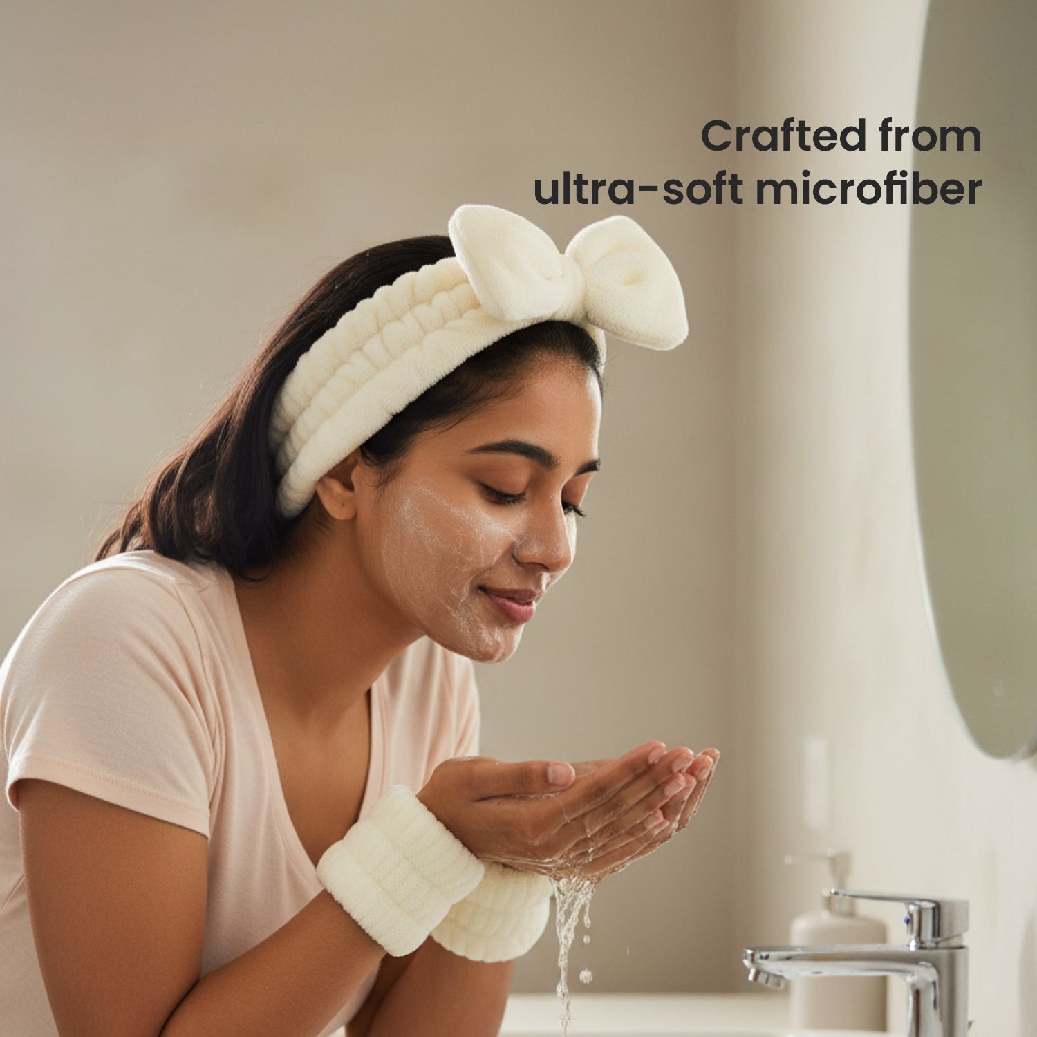 The matching wristbands are crafted to absorb excess water and stop it from dripping down your arms. It is perfect for face wash, masks, makeup removal, spa treatments, or at-home self-care moments.